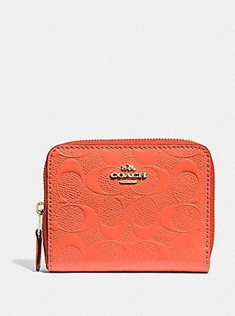 Coach Women's Sinature Patent Leather Small Zip Around Wallet Gold/Neon Orange F38709