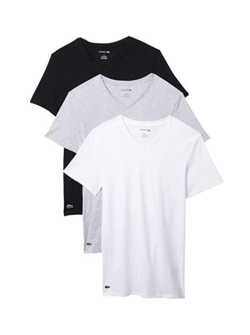 Lacoste Mens of 3 Basic Slim V-Neck T-Shirt White/Silver Chine/Black TH3374 BXY
