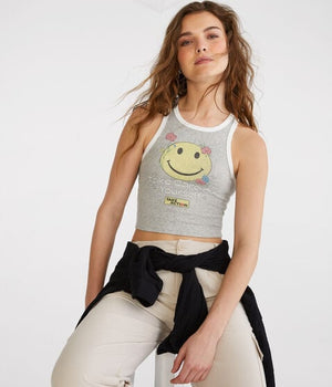 Aeropostale Women's Aero Global Citizen® Smiley Cropped Tank Top Light Heather Grey 9938 052 ET2