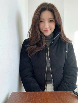Aplaze High Neck Quilted Corduroy Puffer Jacket Black 71516