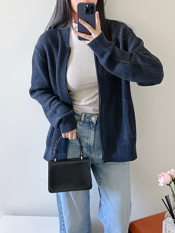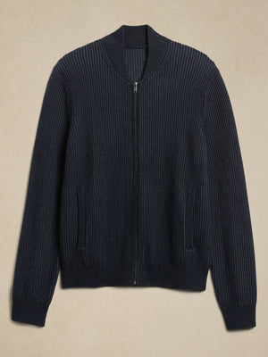 Banana Republic Men's Shaker Stitch Bomber Jacket Navy 734795 01 R1