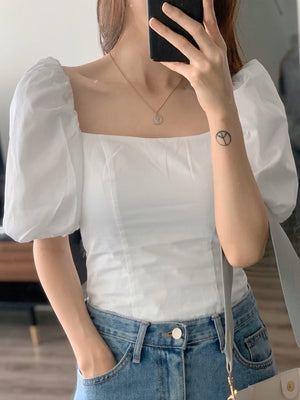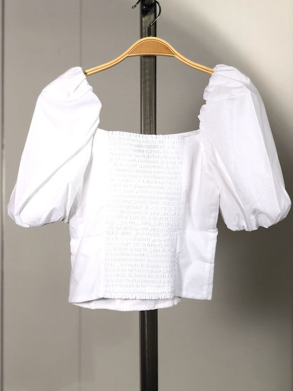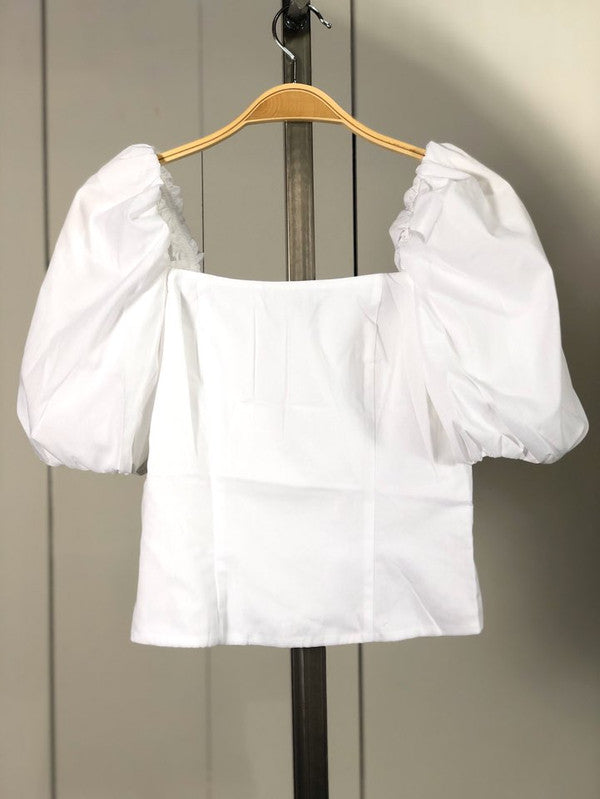 NWT Banana Republic White Puff Sleeve Crop Top - puff sleeves, cropped length, stretchy back, fitted.