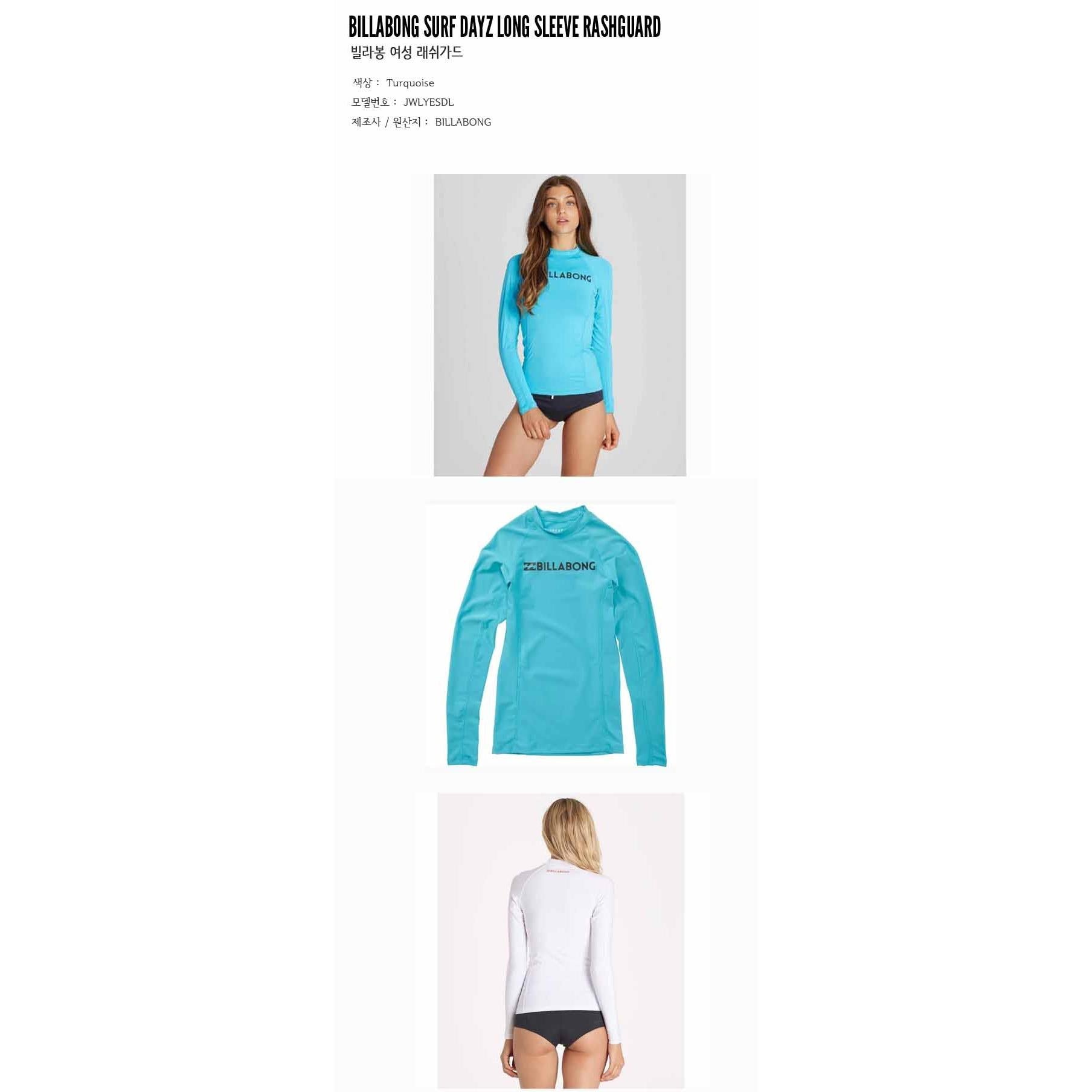 Billabong Surf Dayz Long Sleeve Rashguard Turquoise JWLYESDL
