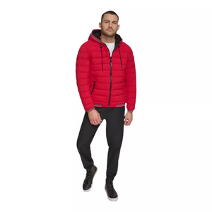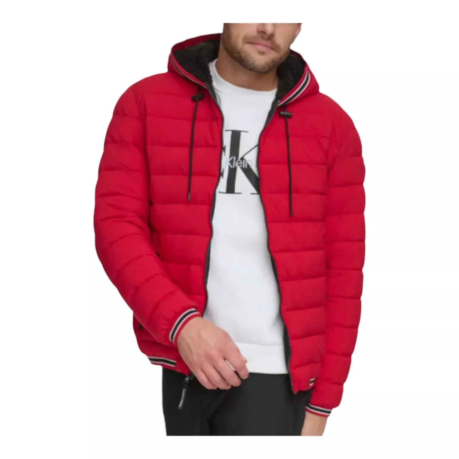 Calvin Klein Men's Super Shine Fleece Lined Puffer Jacket Deep Red CM155956 DRE C4