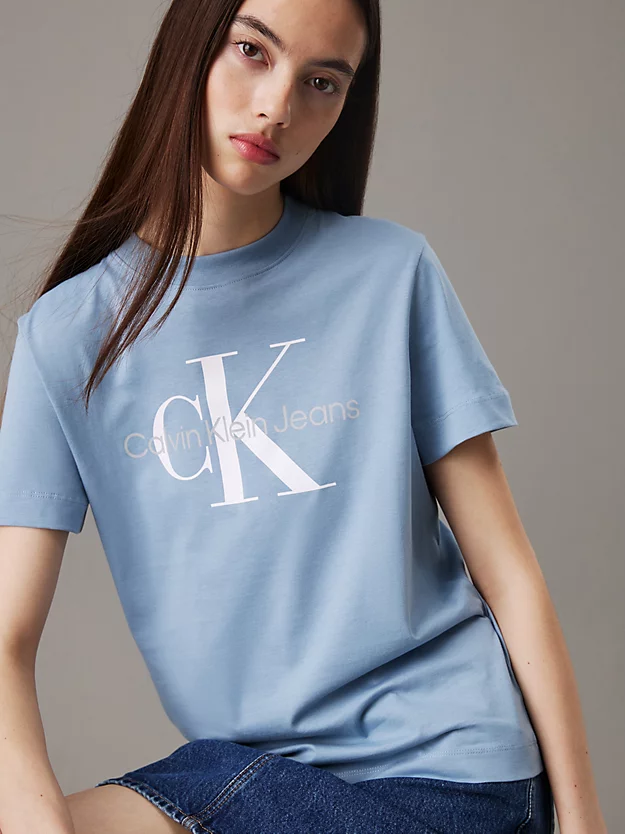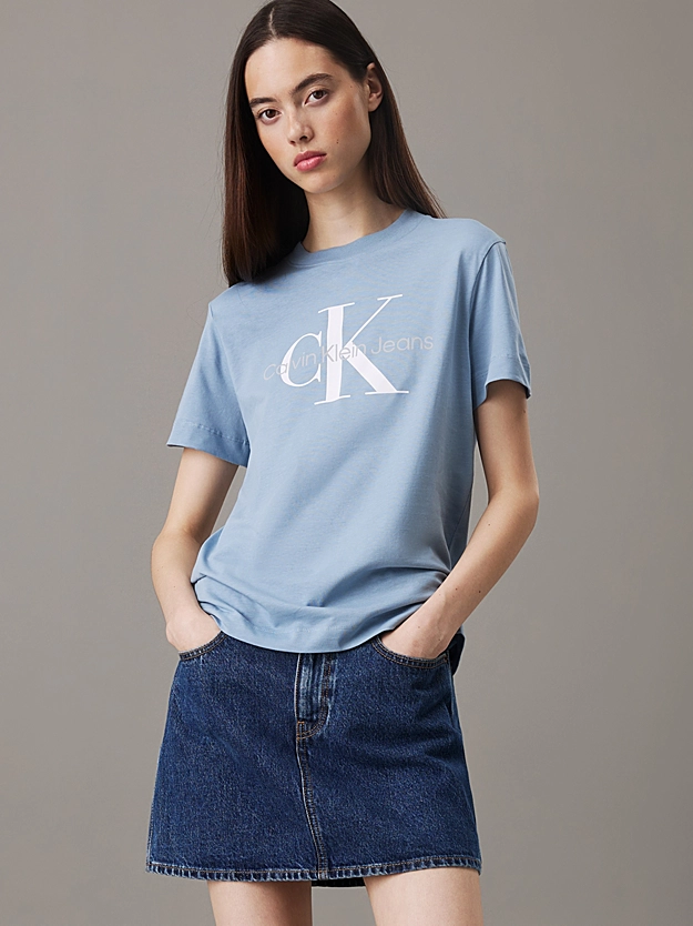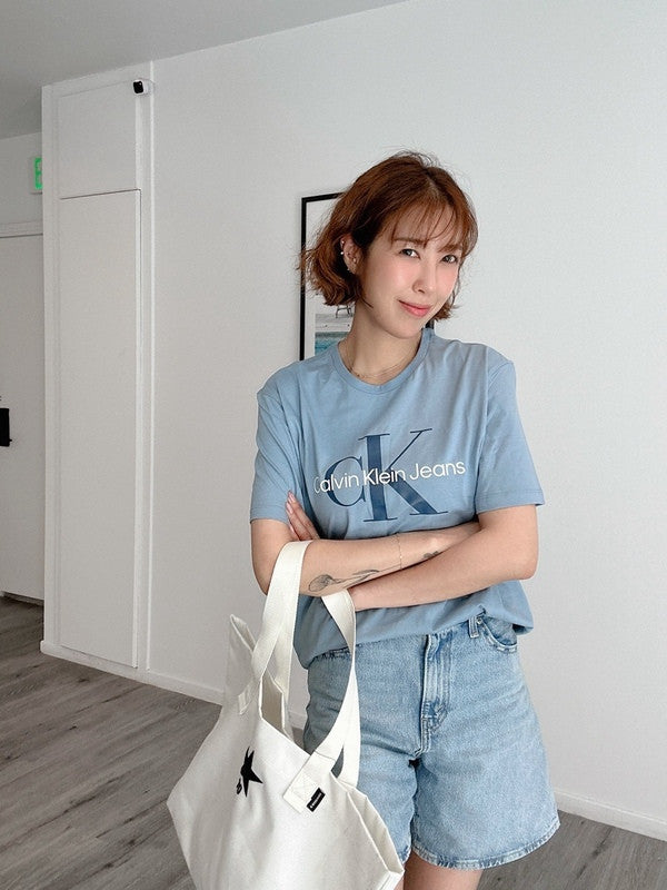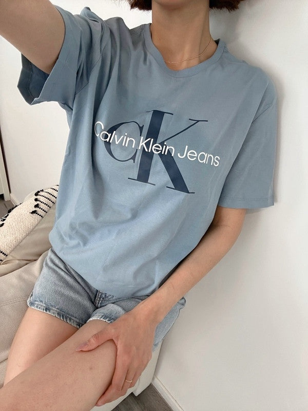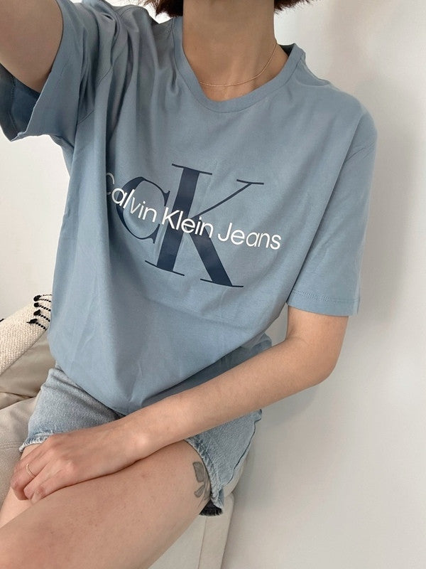 Calvin Klein Women's Monogram Logo Crewneck T Shirt Faded Denim 40DC813 454