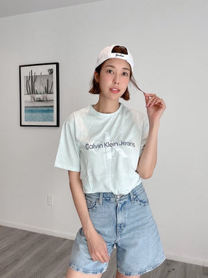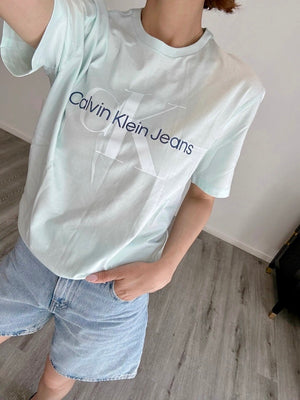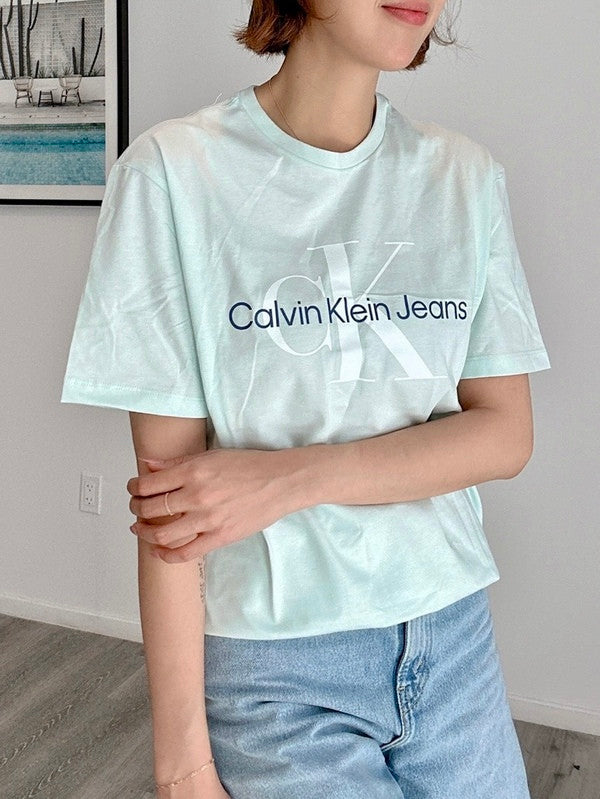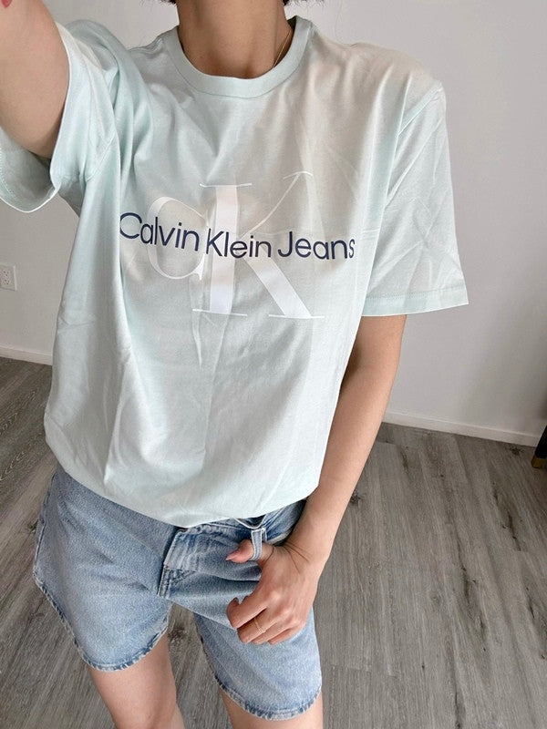 Calvin Klein Women's Monogram Logo Crewneck T Shirt Whispering Blue 40DC813 062