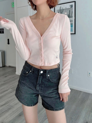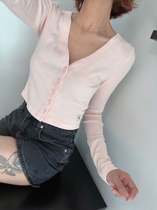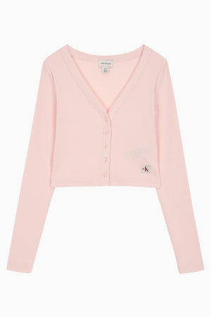 Calvin Klein Women's Long Sleeve Woven Label Cotton Rib Cardigan Pink 47C204G 680