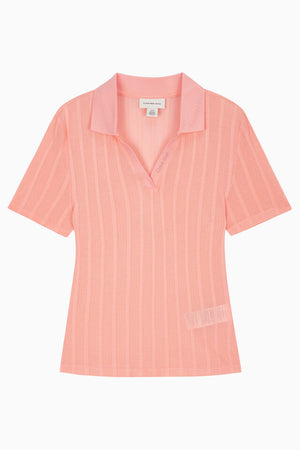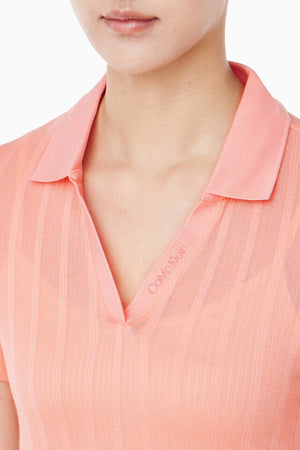 Calvin Klein Women's Pointelle Sheer Ribbed V Neck Polo Top Coral 47C210G 800