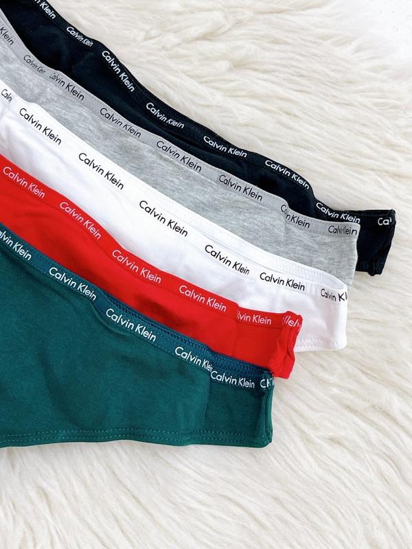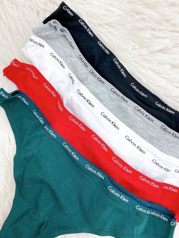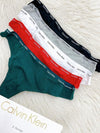 Calvin Klein Women's Signature Cotton Thong 5 Pack Panty White/Black/Grey/Red/Green QD3712-960
