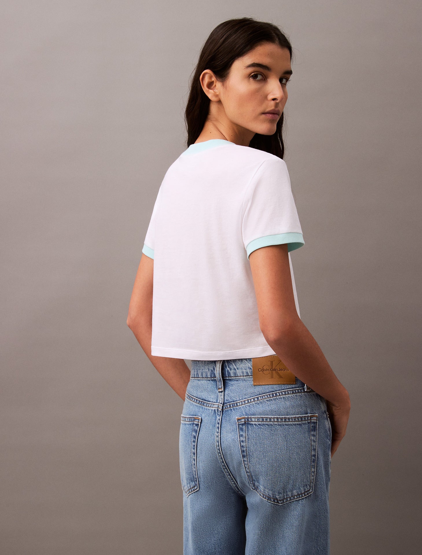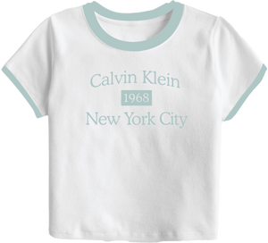 Calvin Klein Women's SS Drapey Jersey Crop T-Shirt Brilliant White/Blue Light 47B808G 113