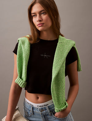 Calvin Klein Women's SS Monogram Baby T-Shirt Black 47AB802 001