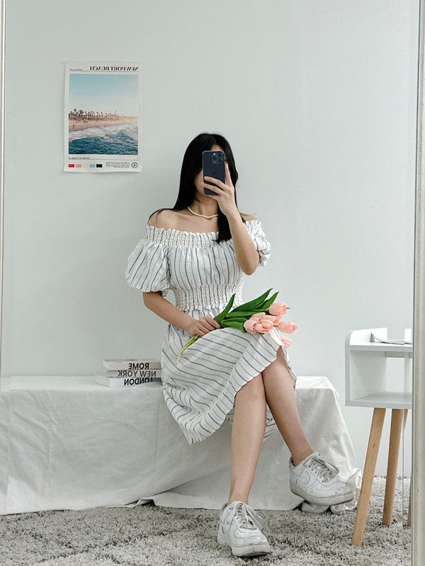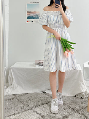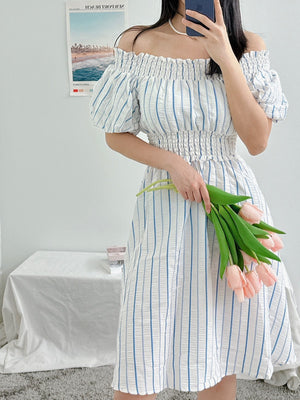 Calvin Klein Women's Striped Off The Shoulder Dress Regatta Cream CB2E5P7F 0AR C3