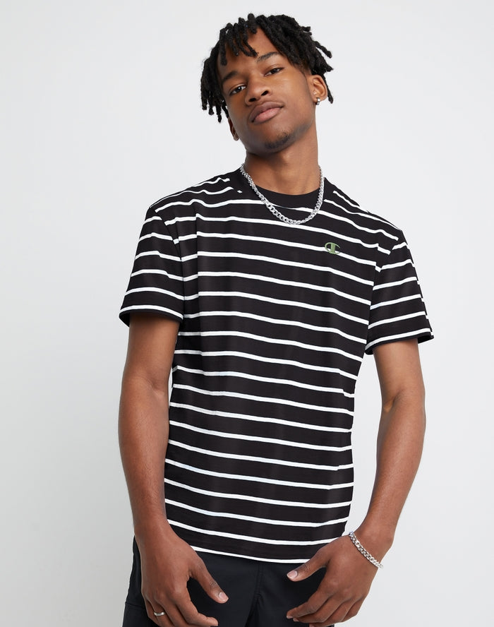 Champion Men's Classic Slub Stripe T-shirt Black/White T74695 407D55 012