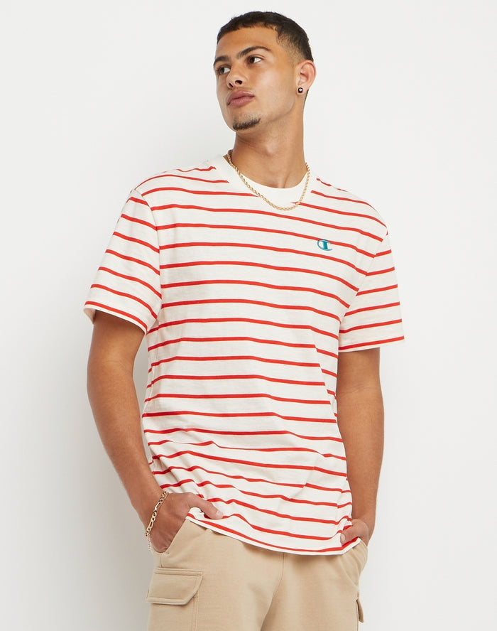 Champion Classic Slub Stripe T-shirt Chalk White/Solar Crimson T74695 407D55 AAPP