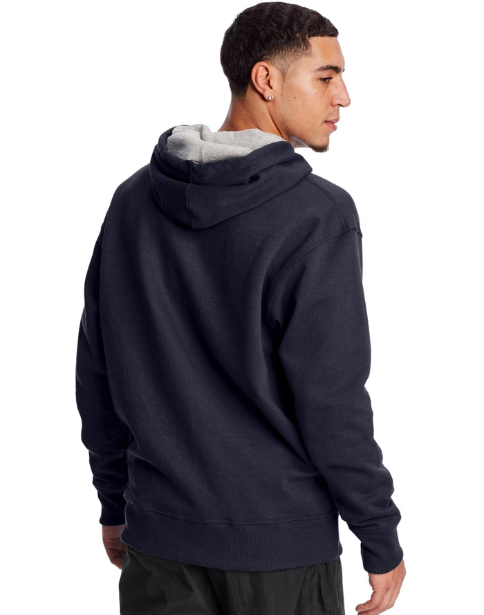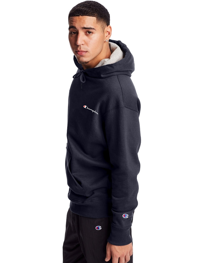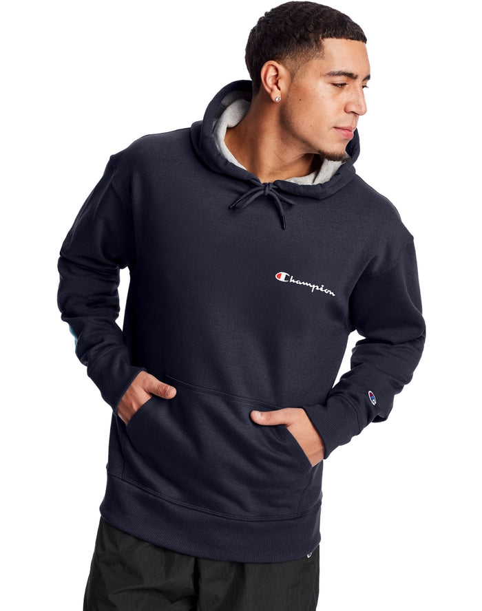 Champion Men's Powerblend Fleece Hoodie Script Logo Navy GF89H Y08160 NYC