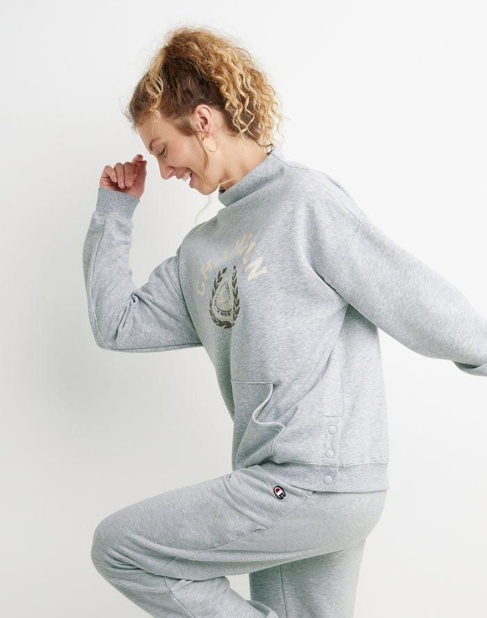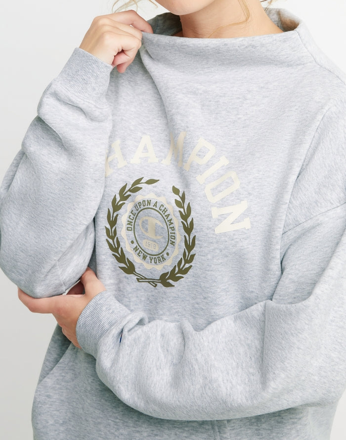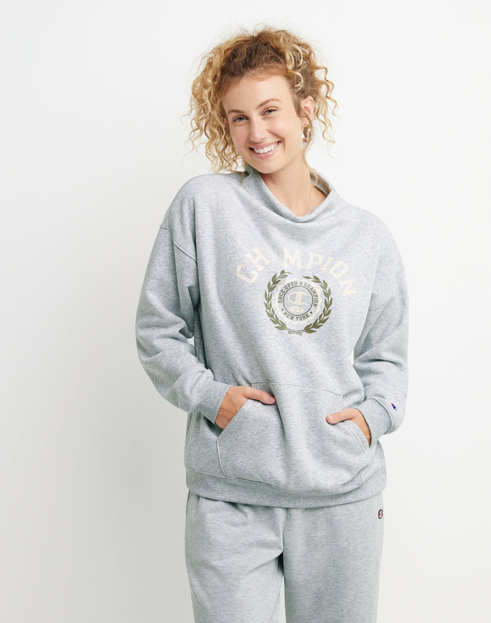 Champion Women's Campus Eco Fleece Funnel Neck Sweatshirt Oxford Grey W4660G 586GUA 023