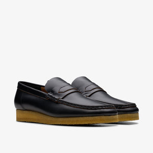 A sophisticated twist on a Clarks Originals icon, the Wallabee Penny fuses the moccasin-inspired Wallabee silhouette with timeless penny loafer detailing. Crafted from smooth black leather, it delivers heritage style with a refined, versatile finish.