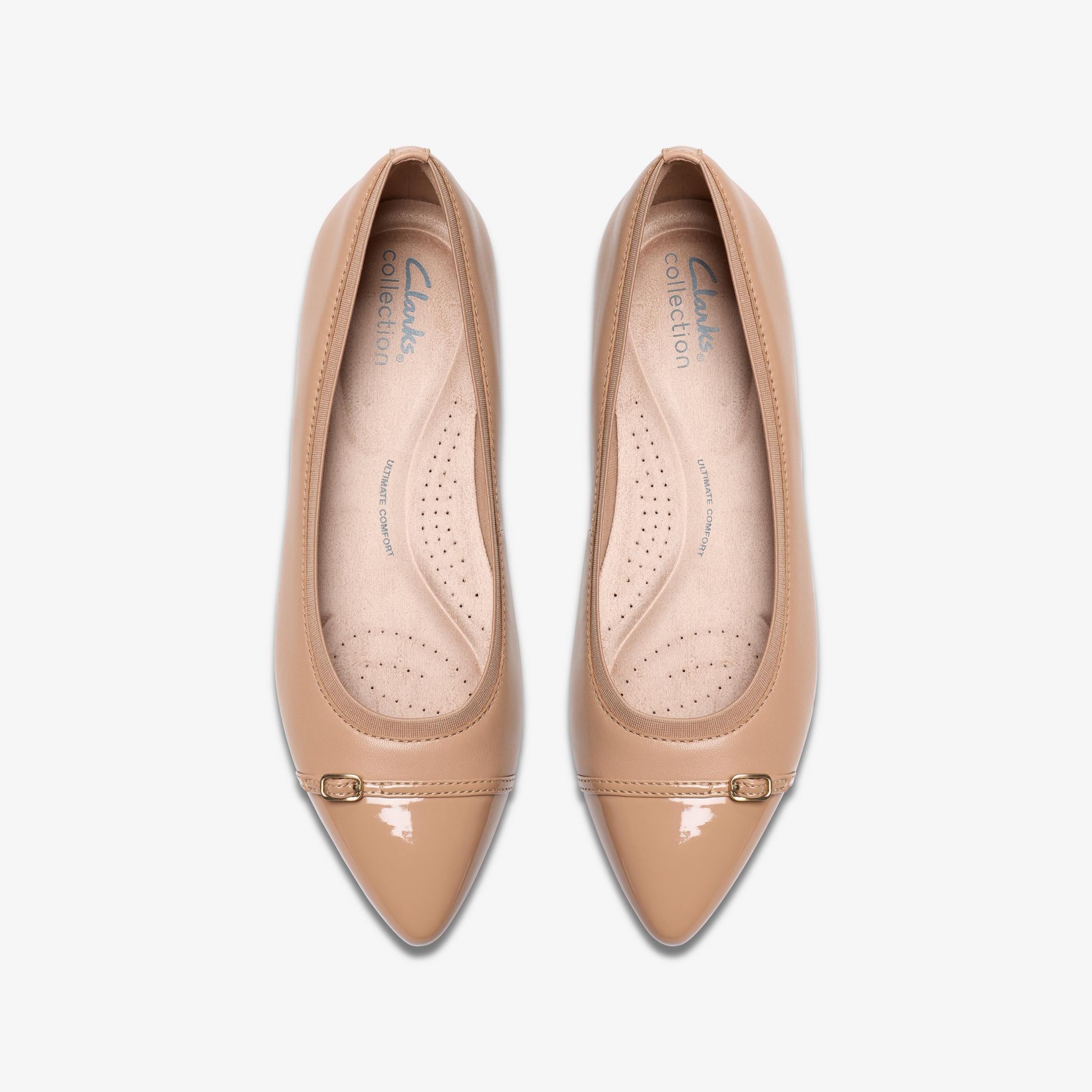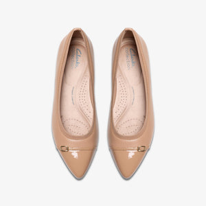 Elevate your flat game with the Natalyn Dusk from Clarks. Crafted in premium beige leather with a pointed toe silhouette and subtle buckle trim, this flat fuses understated elegance with all-day comfort. Designed for both workwear and elevated casual, it’s the perfect “dress-flat” that doesn’t compromise on support or style.