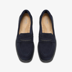 Rich navy suede upper with refined texture and subtle depth