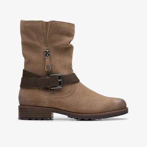 Clarks Women’s Nissini Pearl Mid Boot – Pebble Suede (Style #26180933)
