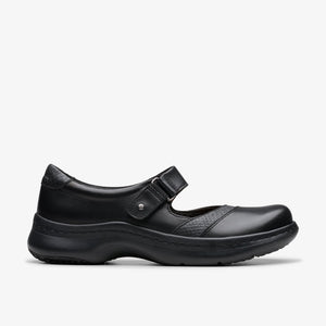 Find your work-life balance with Clarks PRO, a collection of styles ready to work shifts and see you through long hours on your feet! A professional pair built for busy working life; performance-focused, Mary-Jane style Clarks Pro Pace arrives in smart leather, combining premium materials with superior comfort tech to enhance every moment you spend on the go. Its specialized soles have been tested and certified through SATRA – a leading technical authority for footwear and leather – to maximise slip-resistant performance.