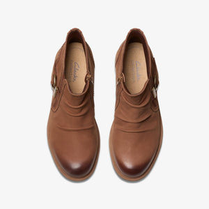 The Clarks Hearth Clara blends classic design with modern comfort, making it the perfect everyday ankle boot. Crafted in rich brown leather, this sleek silhouette offers timeless style and a cushioned feel, ensuring you look and feel great from morning to night.