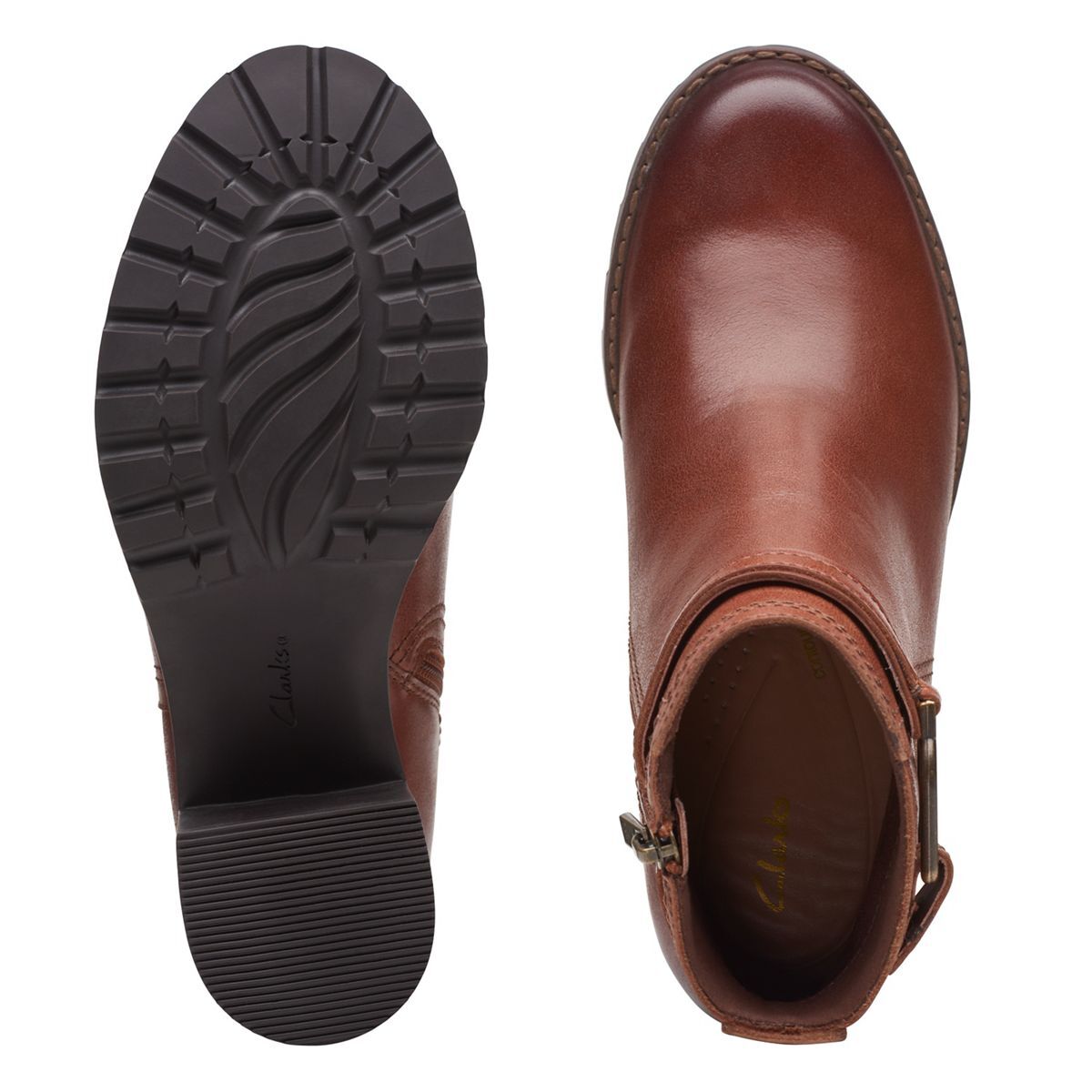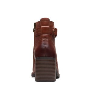 Clarks Women’s Leda Strap Ankle Boot – Mahogany Leather (Style #26174961)