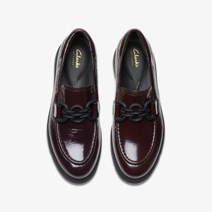 Add a pop of color and polish to your look with the Clarks Loriini Izzy. Featuring a glossy plum patent finish, this loafer-inspired style blends sophisticated charm with modern comfort, making it a standout choice for both work and weekend wear.