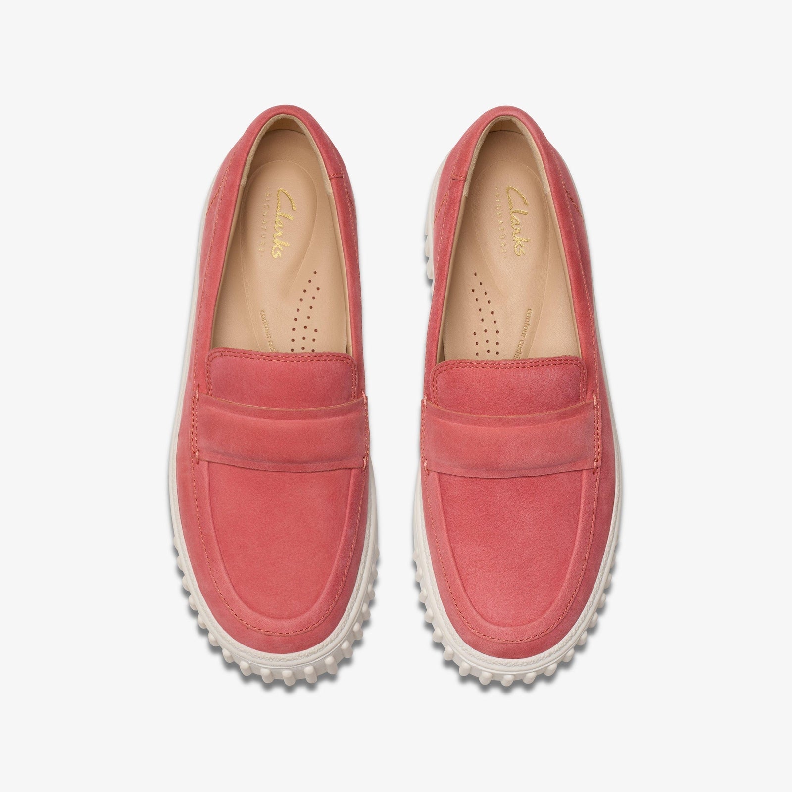 A contemporary nod to classic designs, the Clarks Mayhill Cove Loafer combines archival style with modern comfort enhancements. Crafted from soft coral nubuck, it features a plush pillow-top Contour Cushion footbed and a chunky ribbed outsole to provide cushioning without added bulk. Designed to run large—consider ordering half a size down for the perfect fit.