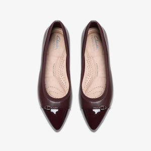 Elevate your flat game with the Natalyn Dusk from Clarks. Crafted in premium Merlot leather with a pointed toe silhouette and subtle buckle trim, this flat fuses understated elegance with all-day comfort. Designed for both workwear and elevated casual, it’s the perfect “dress-flat” that doesn’t compromise on support or style.