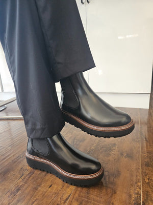 Turns heads without sacrificing comfort: the Orianna Up in Black Leather blends edgy Chelsea attitude with everyday wearability. Polished leather, lugged outsole, and cushioning where it counts—so you can step out confidently.