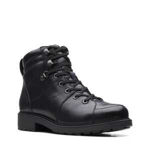 The Clarks Women’s Orinoco2 Hike WP is a rugged yet stylish waterproof boot designed for modern versatility. Crafted in smooth black leather with hiking-inspired details, this lace-up silhouette delivers durability, comfort, and timeless appeal—perfect for outdoor adventures or city wear.