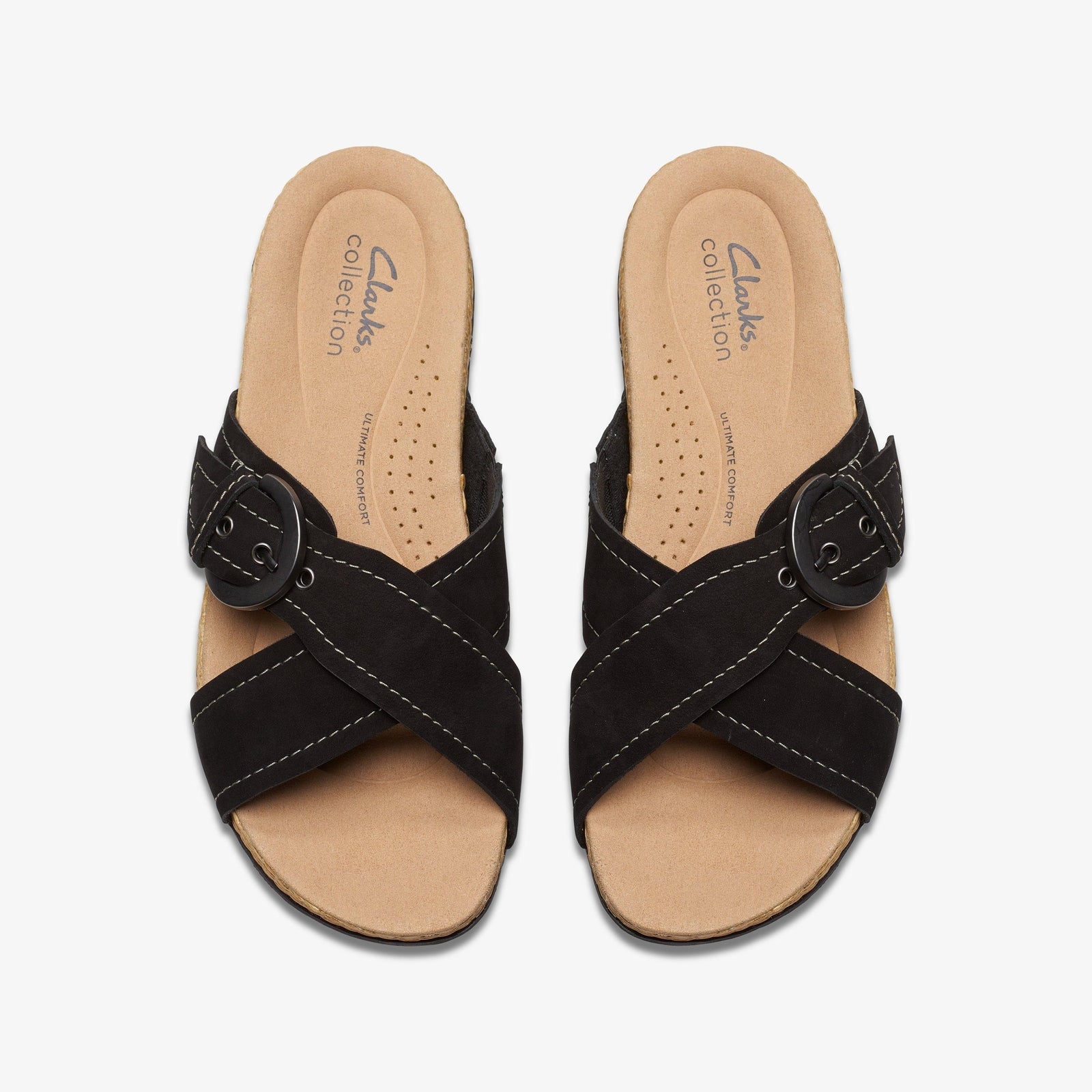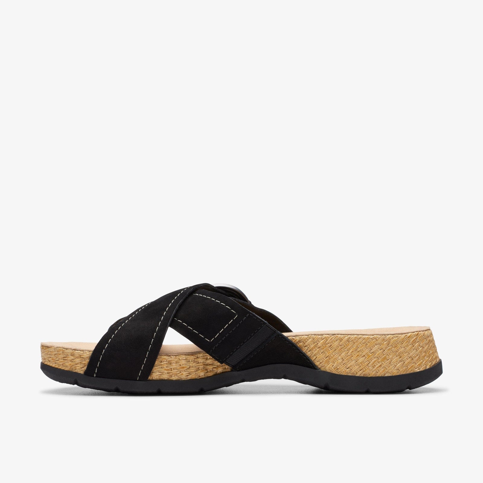 A stylish slide-sandal from Clarks that delivers relaxed elegance with premium materials. The Reileigh May in Black Nubuck pairs a sleek upper with comfortable footbed design, making it ideal for casual summer days or laid-back evenings.