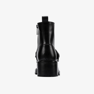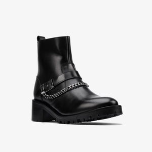 Upper: Premium black leather with chain and buckle detailing
