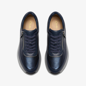Blending sporty style with all-day comfort, the Clarks Tivoli Zip in navy combi is a versatile everyday sneaker. Its mix of materials, subtle color accents, and convenient zip closure make it perfect for effortless, on-the-go wear.
