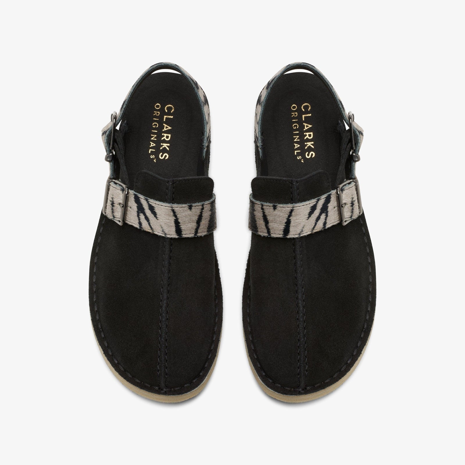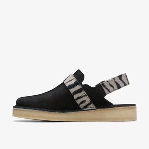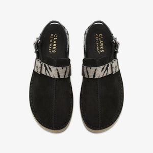 A statement piece for casual days, the Trek Mule brings a fresh twist to classic Clarks Originals style. This slip-on mule features rich black suede, polished hardware, and sits on a natural crepe rubber sole—combining retro charm with standout comfort.