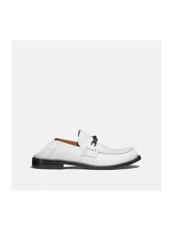 An update of a prep staple, this versatile leather women's shoe is designed with a fold-down heel to be worn as both a loafer and a mule. Signature Chain hardware adds shine and an iconic Coach look.