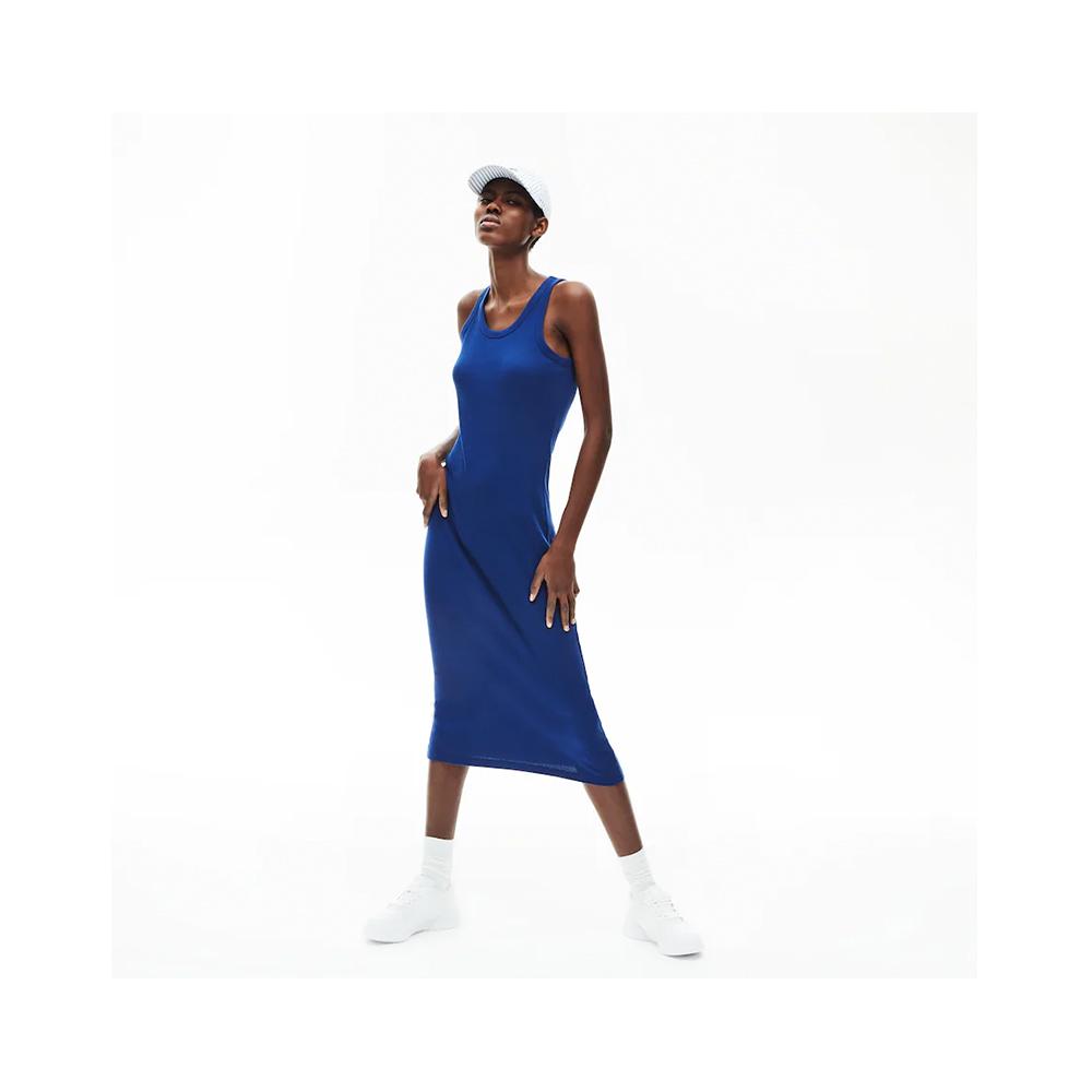 Lacoste Women's Long Ribbed Cotton Dress Methylene EF5480 F9F