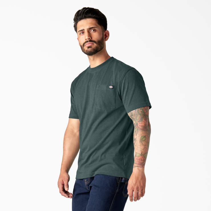 Dickies Heavyweight Heathered Pocket Tee Mallard Green Single Dye WS450HLSD