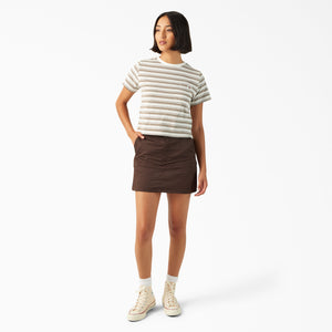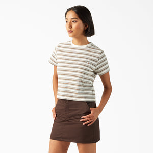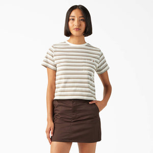 Dickies Women's Large Striped Cropped Pocket T-Shirt Ecru FSR89ECR