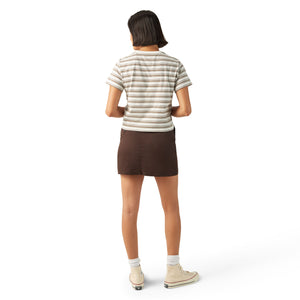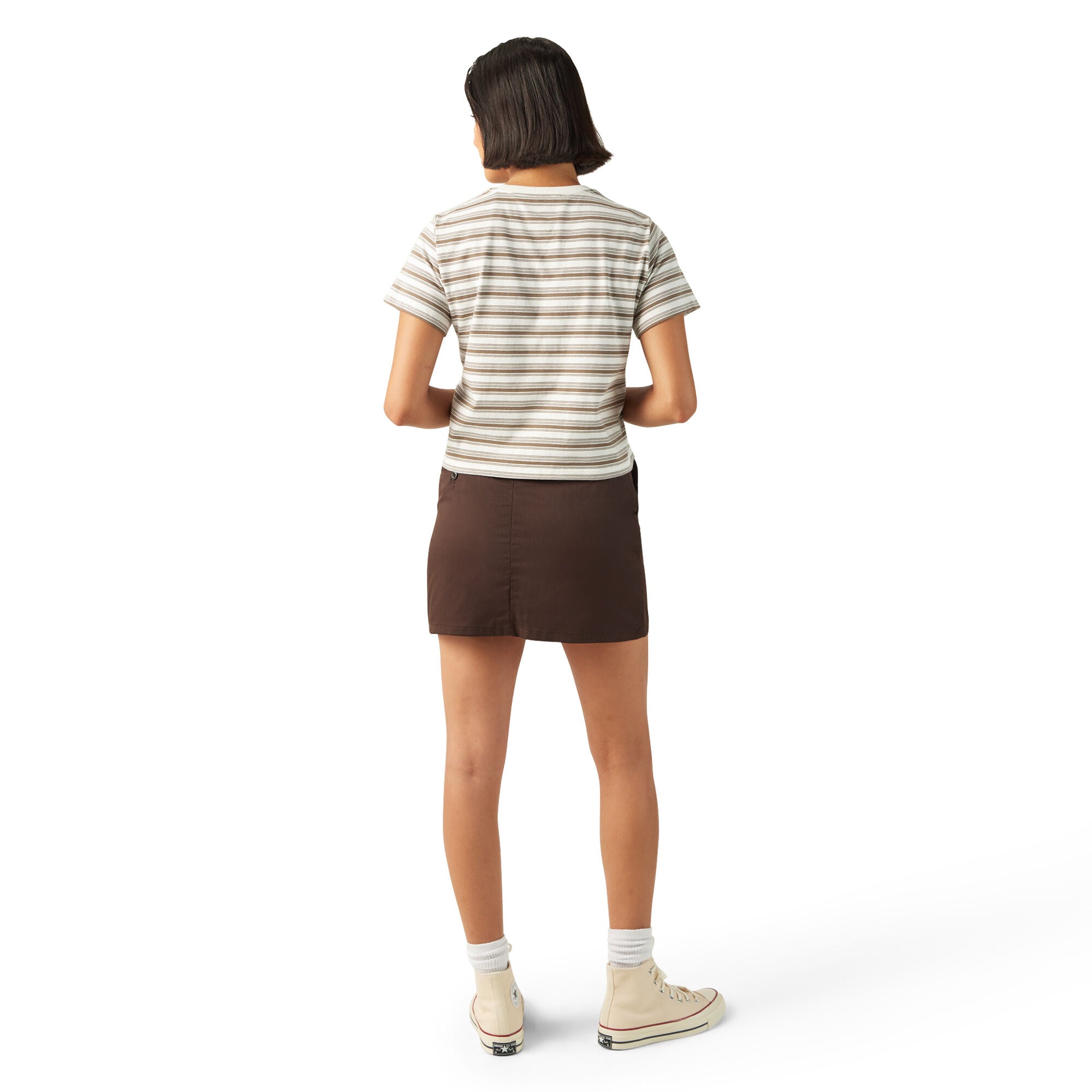 Channel laid-back streetwear energy with the Dickies Women's Large Striped Cropped Pocket T-Shirt in soft ecru.