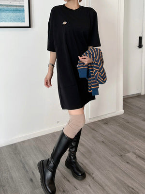 The Mapleton Tee Dress blends laid-back ease with streetwear edge—ideal for casual days, summer layering, or pairing with sneakers and jackets for a sporty look.