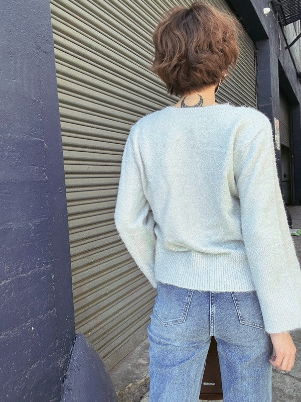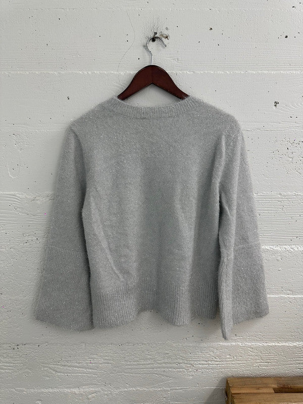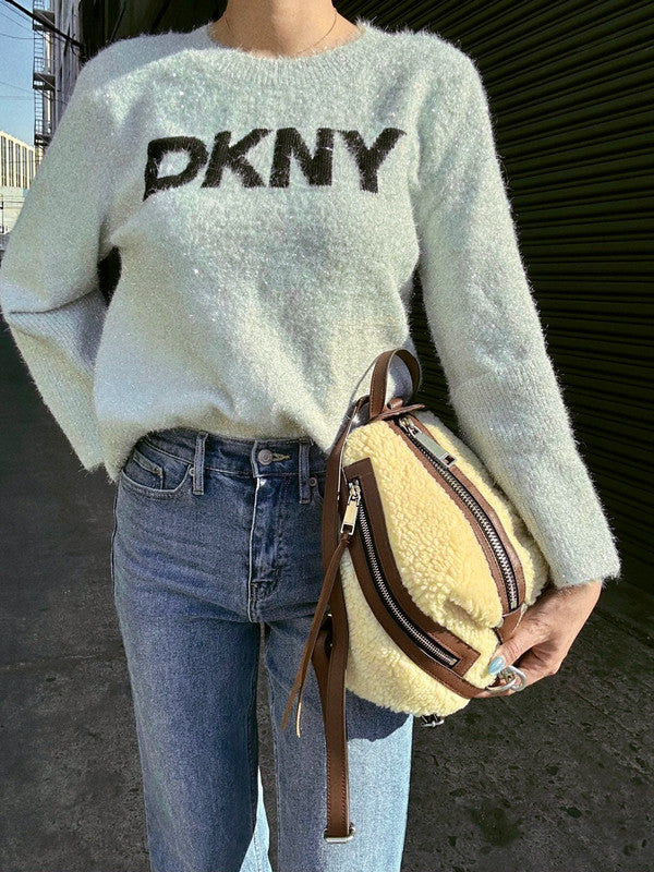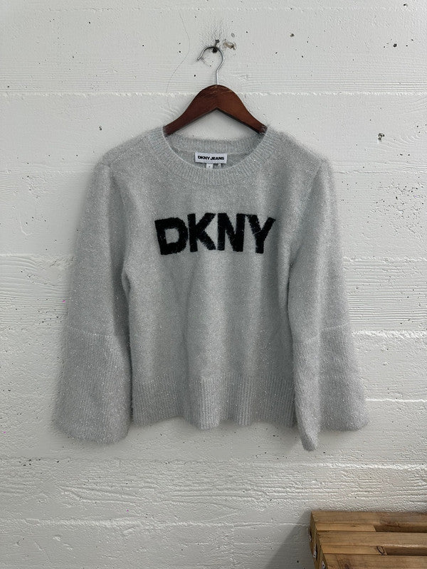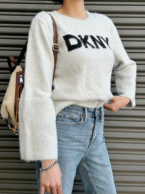 DKNY Women's Scoop Neck Metallic Logo Sweater Ivory/Black DJ4R0504 K1