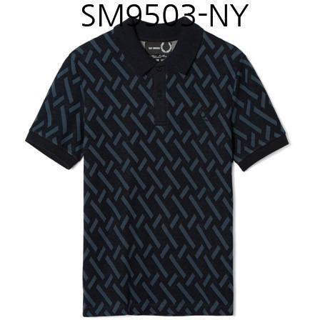 FRED PERRY X Raf Simons Abstract Jacquard Collaboraion Pique Shirt Navy SM9503