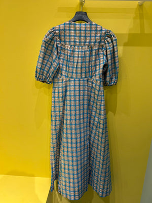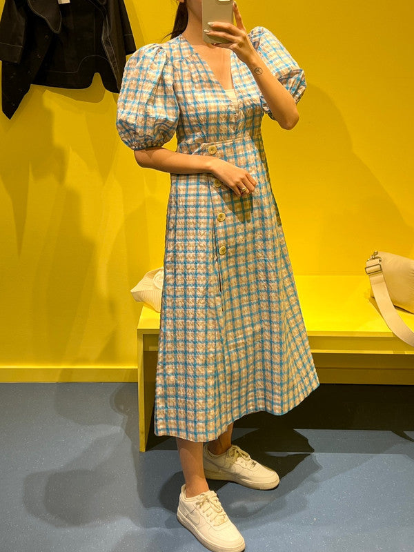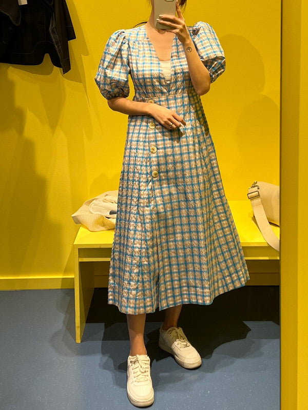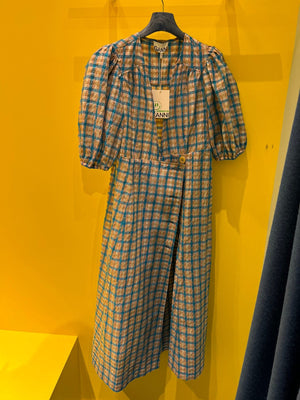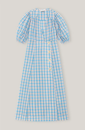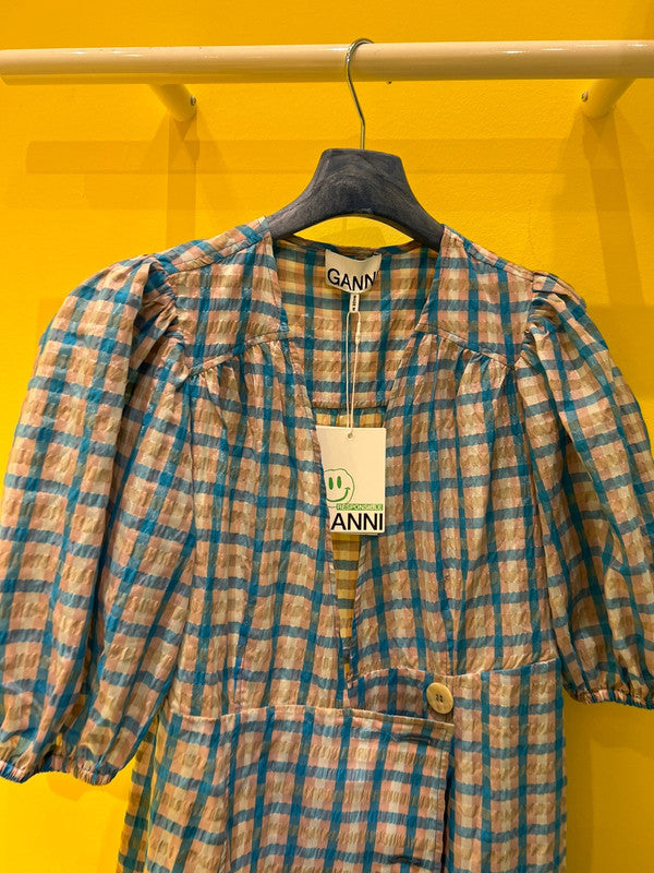 Ganni Women's Seersucker Asymmetrical Button Closure Wrap Dress Pink Nectar F6687 478 MX1