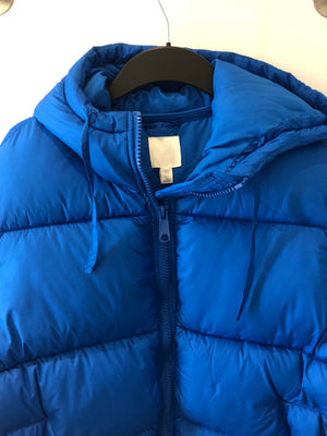 H&M Women's Hooded Puffer Jacket Bright Blue 1009247 003 H2