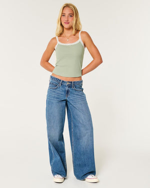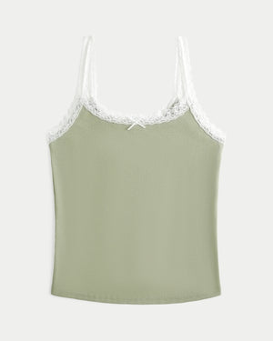 Hollister Women's Ribbed Lace Trim Cami Sage Green 33929200107320 ET1