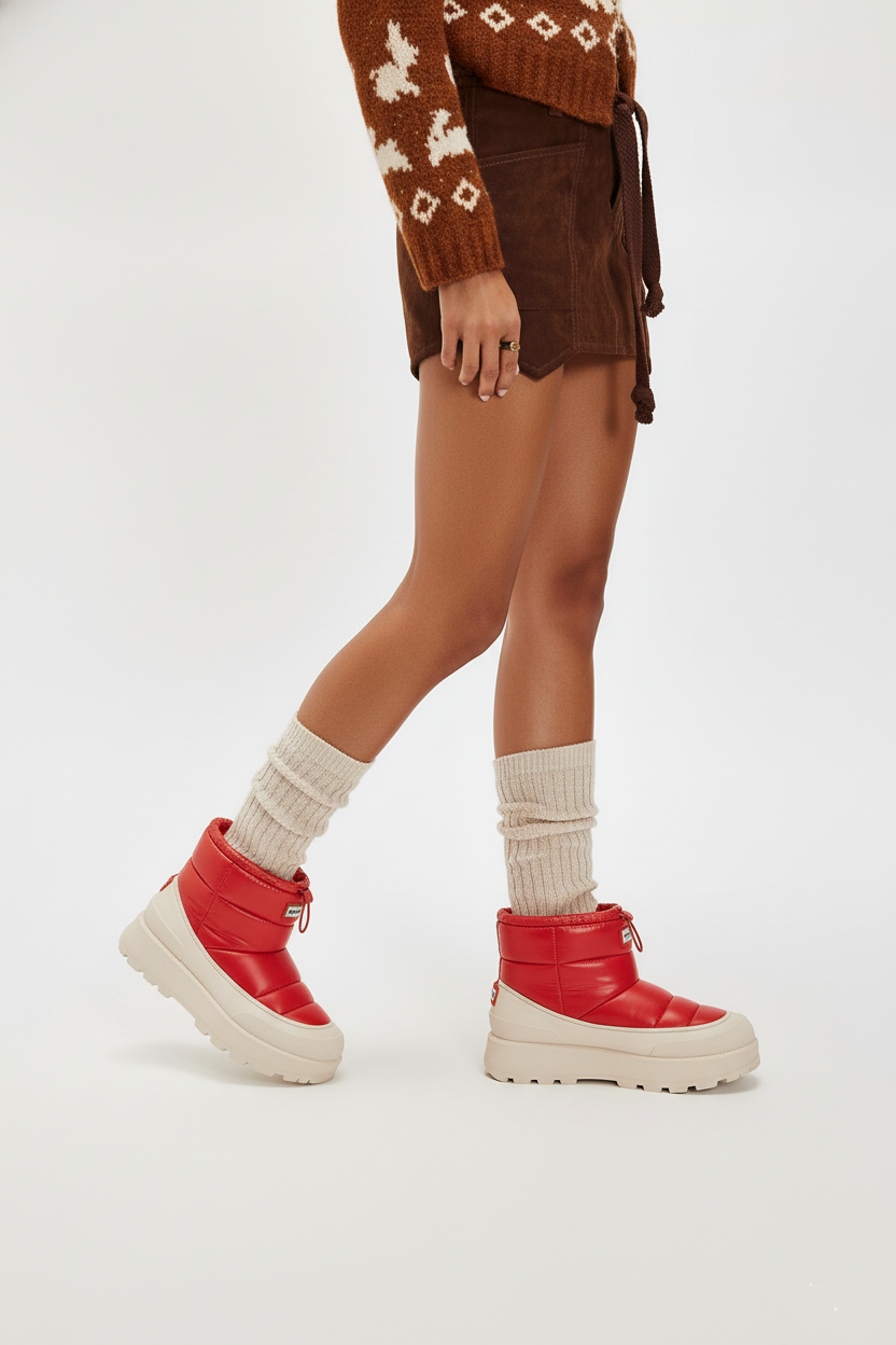 The Hunter Amble Waterproof Snow Booties are built for cold-weather comfort, offering reliable protection with a lightweight feel. Designed in a bold Medium Red colorway, these insulated booties keep your feet warm, dry, and supported through winter conditions. With a cozy interior, waterproof construction, and slip-resistant outsole, they’re perfect for daily winter wear, travel, and snowy days.