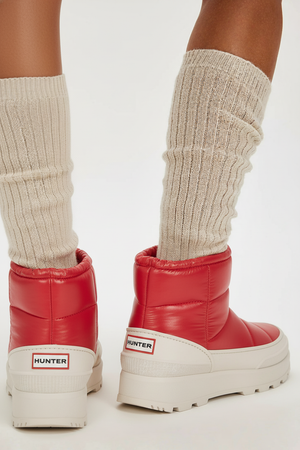 Perfect for winter walks, errands, travel, or snowy commutes. The Amble Snow Booties combine warmth, waterproof protection, and a bold Hunter look—ideal customers who need reliable winter footwear with a stylish touch.