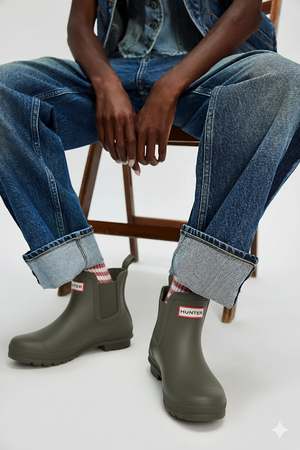 The Hunter Original Chelsea Boot has been re-engineered for an improved fit and all-day comfort. A wider ankle circumference, and an increased curve in the heel and around the Achilles tendon delivers an even more comfortable fit.